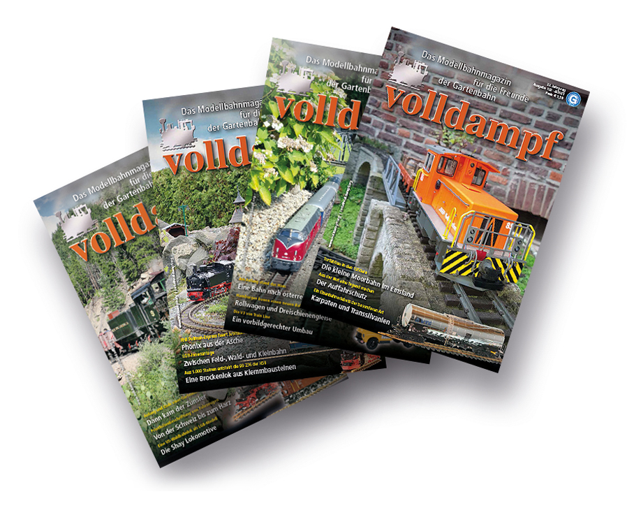 Ein kompletter Jahrgang des Gartenbahnmagazins „volldampf“.